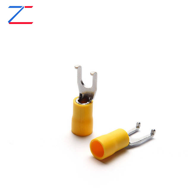 Zhechi jest profesjonalnym producentem izolowanych końcówek widełkowych z kołnierzem. Nasza profesjonalna wiedza w zakresie produkcji izolowanych końcówek widełkowych z kołnierzem była doskonalona przez ponad 10 lat. Zastosowanie tych izolowanych końcówek widełkowych z kołnierzem: pomaga w połączeniu wielożyłowego przewodu z mosiężną końcówką lub aplikatorem elektrycznym.